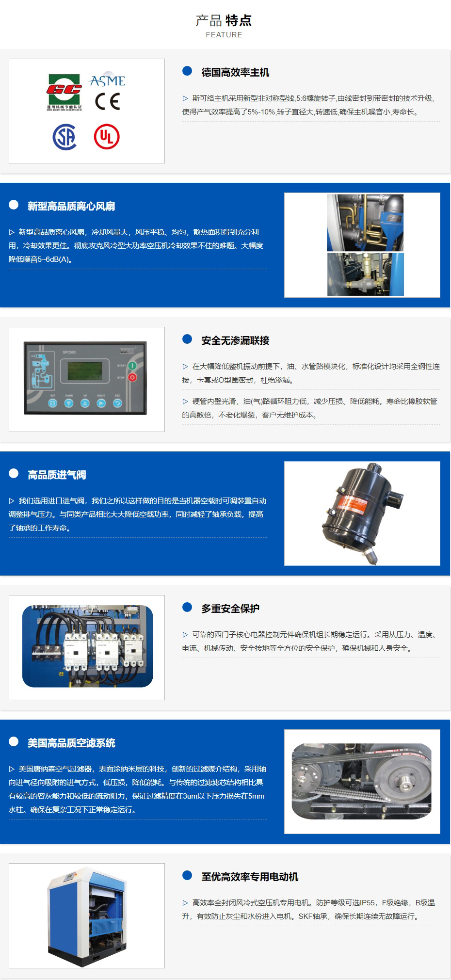 进口轴承和润滑脂,确保机头寿命和可靠性,压缩空气性能持久稳定