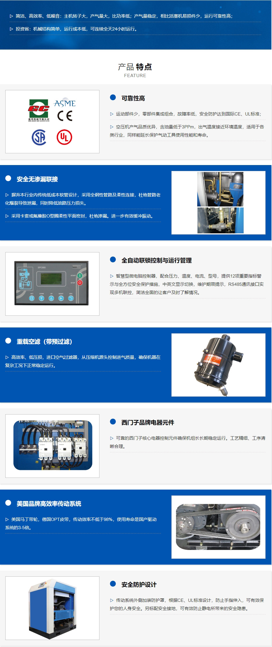 进口轴承和润滑脂,确保机头寿命和可靠性,压缩空气性能持久稳定